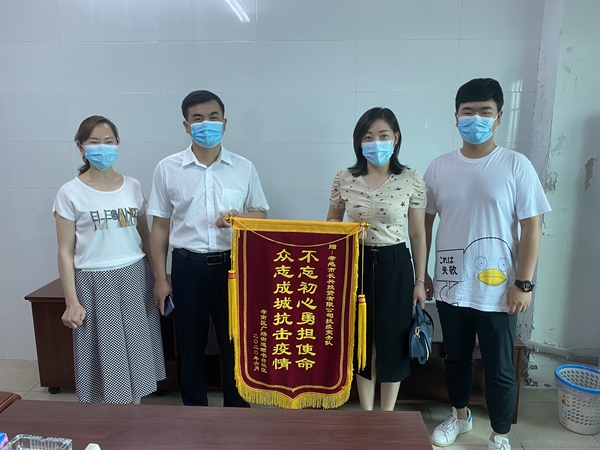 “我代表社區(qū)全體居民感謝貴公司3名黨員干部對本社區(qū)抗疫工作的幫助”。 6月29日下午,孝南區(qū)廣場街道曬書臺社區(qū)書記李丹,將錦旗送到孝感市長興投資有限公司時動情地說。